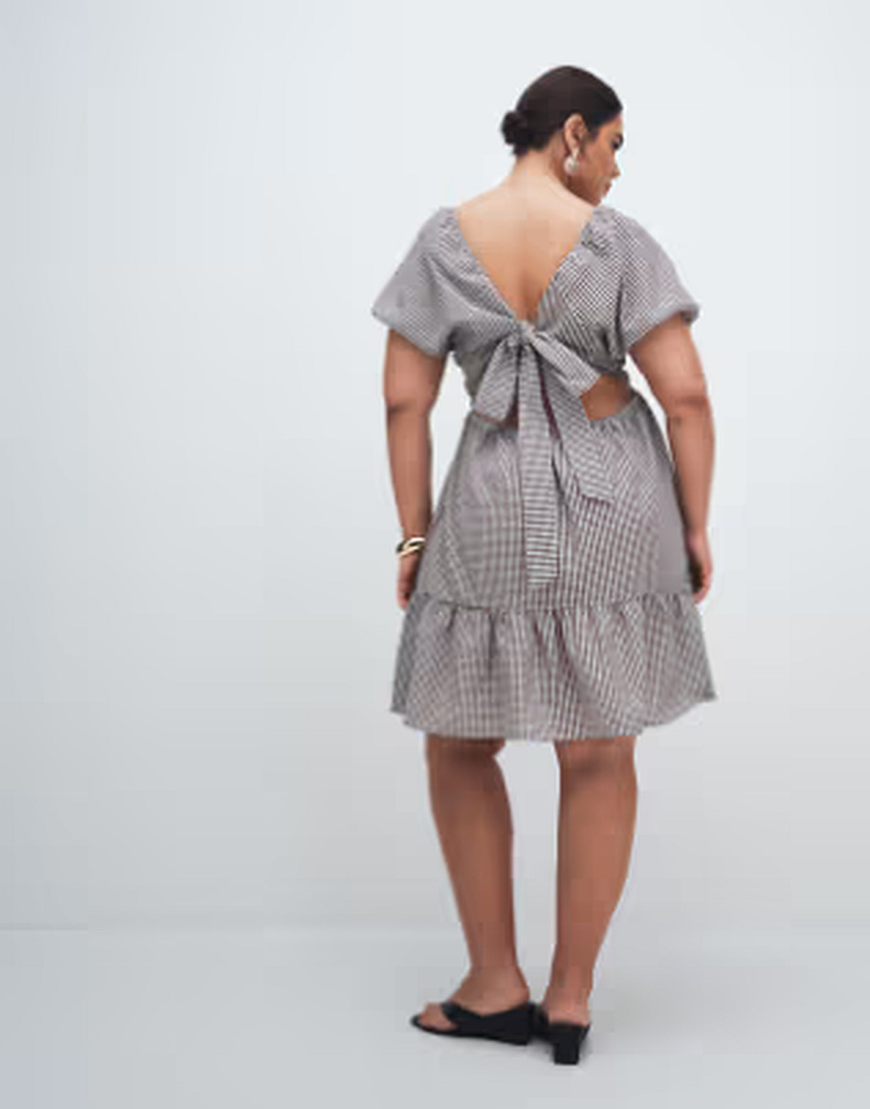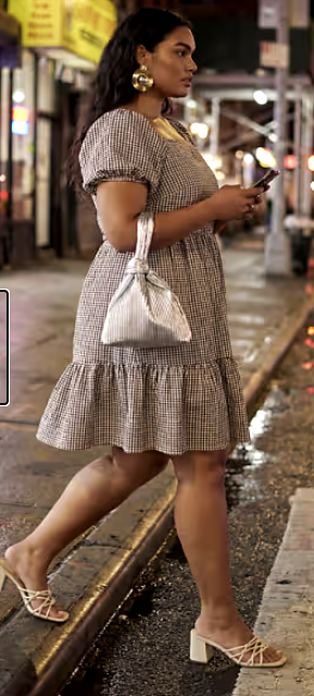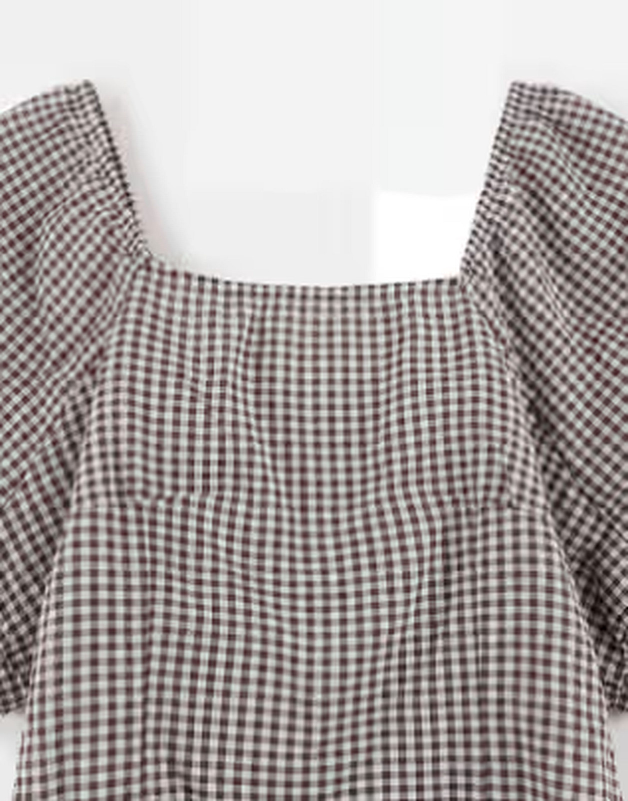 Chocolate Gingham Short Dress with a flattering feminine shape