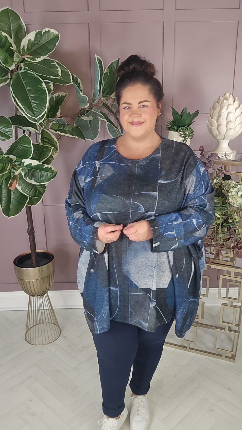 The Midnight Mosaic Swing Tunic blends soft stretch fabric with a flattering swing shape that moves beautifully as you do. Because the print mixes shades of blue and grey, it brings a calm, cool tone that’s easy to pair with jeans, leggings, or trousers. The round neckline and dropped shoulders add to its relaxed feel, while the long sleeves keep you cosy without feeling bulky. Since the shape falls away gently from the body, it flatters your figure and feels light at the same time.