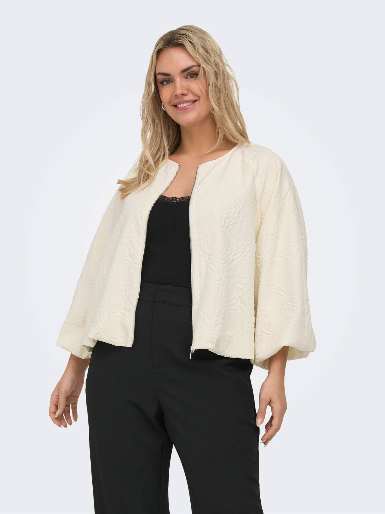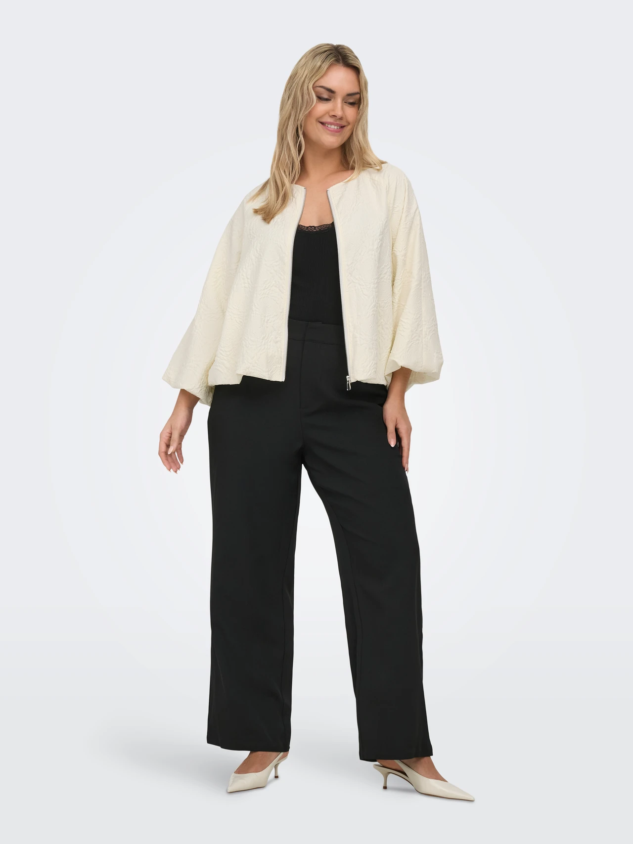 Caranja Jacket White by Only – soft texture, floaty sleeves, and an easy polished finish