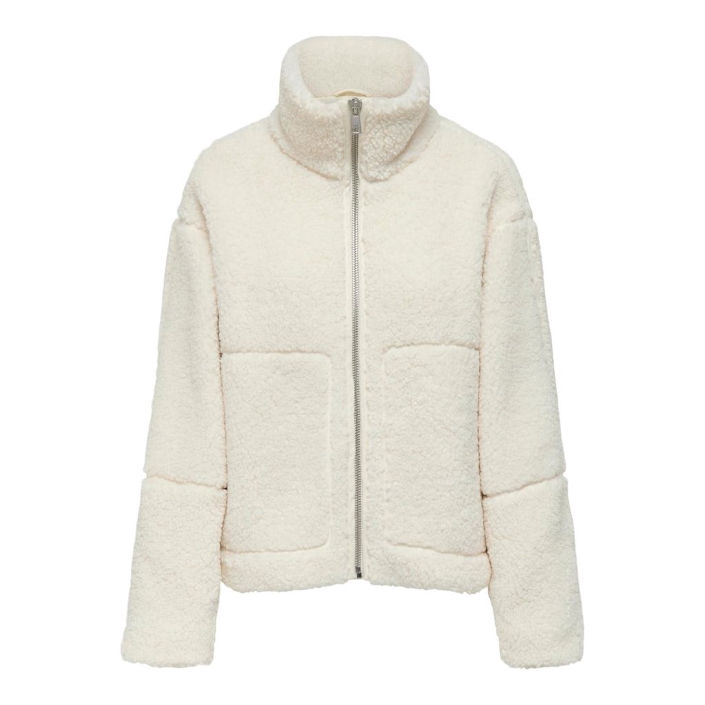 ONLY Caraspen Teddy Jacket – soft cream teddy jacket with recycled polyester for warmth and comfort.