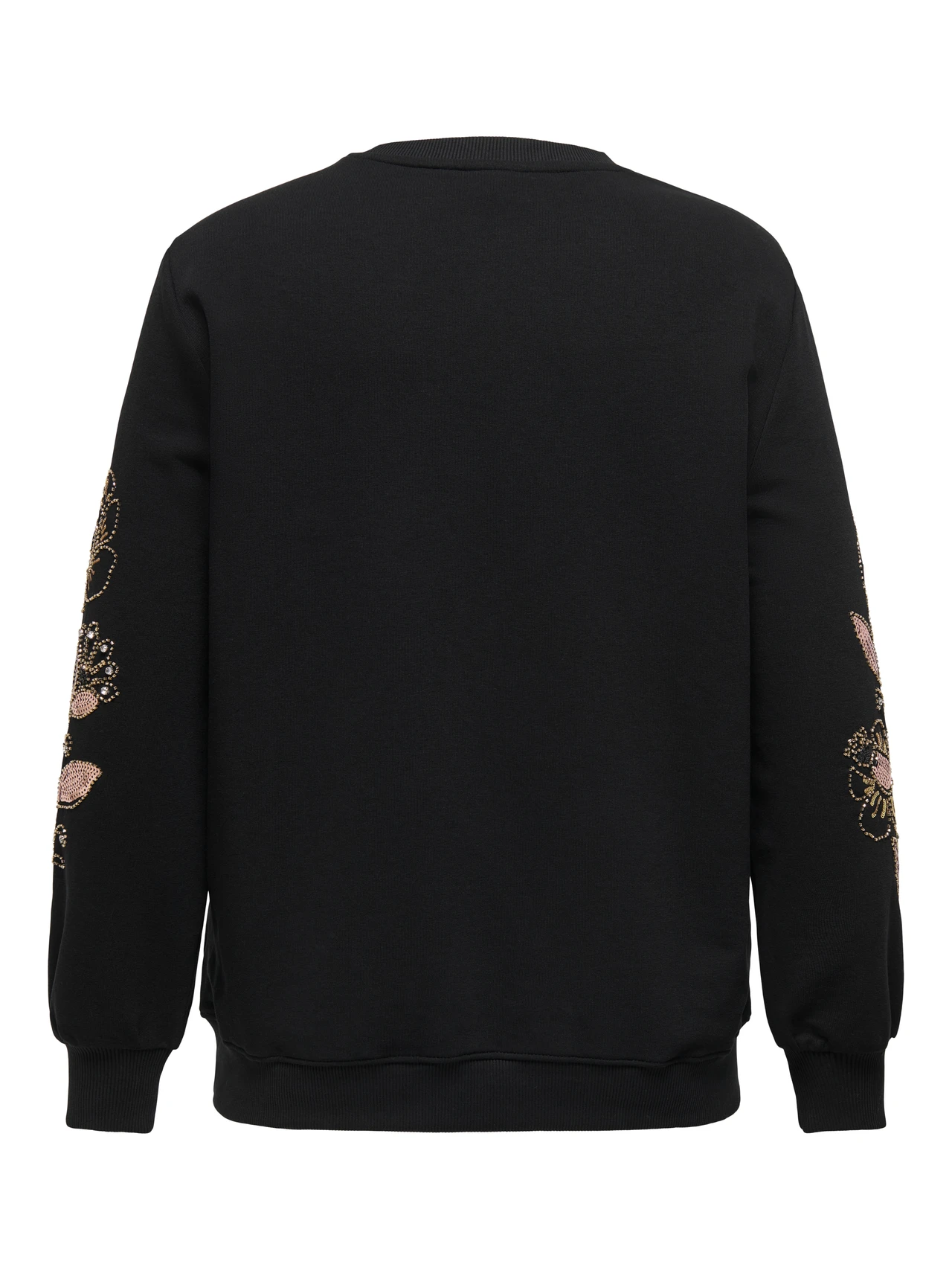 ONLY Carteresa Sweatshirt – black long-sleeve top with sequin sleeve detail and ribbed hem, made from soft recycled cotton blend.