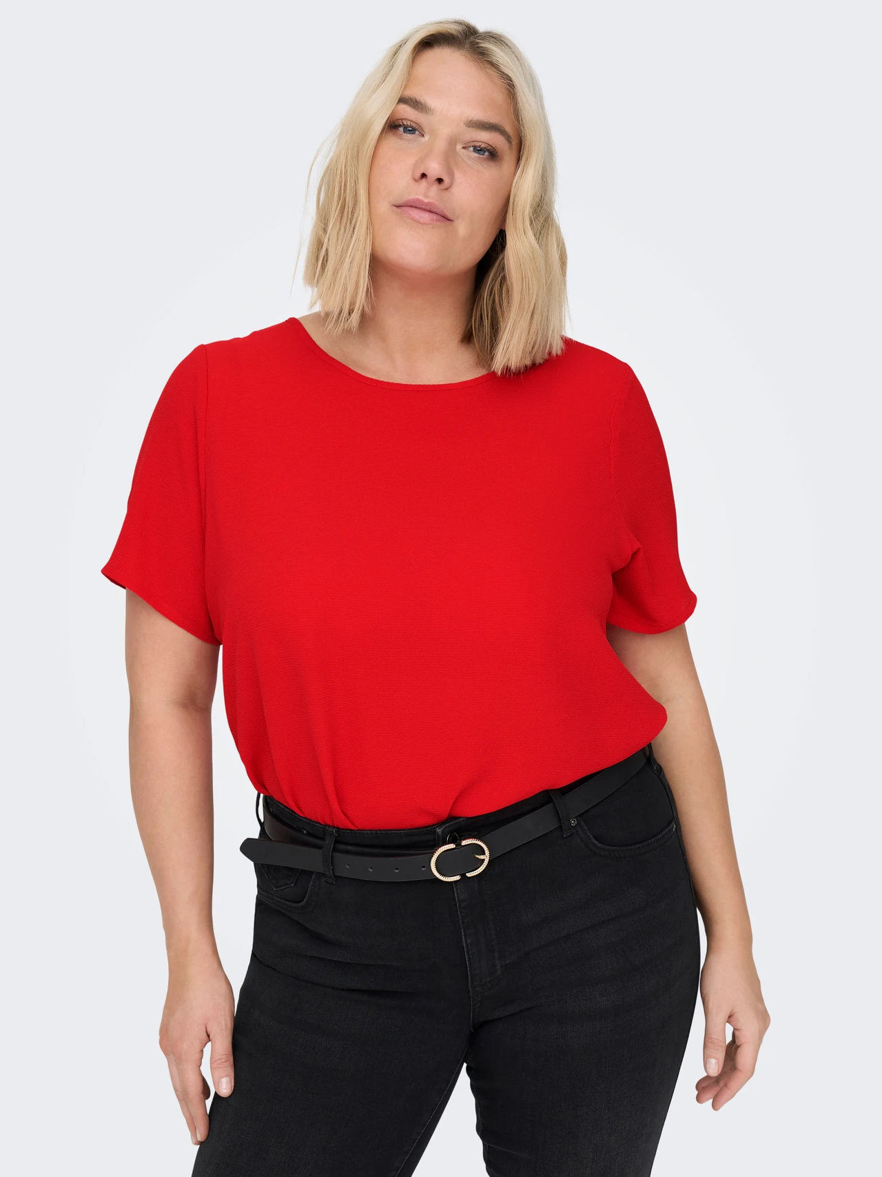 The carefully balanced design means the ONLY Carvica Red Top looks styled even when you reach for it at the last minute. Whether lightly tucked at the front or worn loose, the blouse silhouette creates a smooth visual flow that flatters the waist and shoulders without clinging or pulling. Short sleeves keep the look light and easy, making it ideal for warmer days or layering under jackets and cardigans.