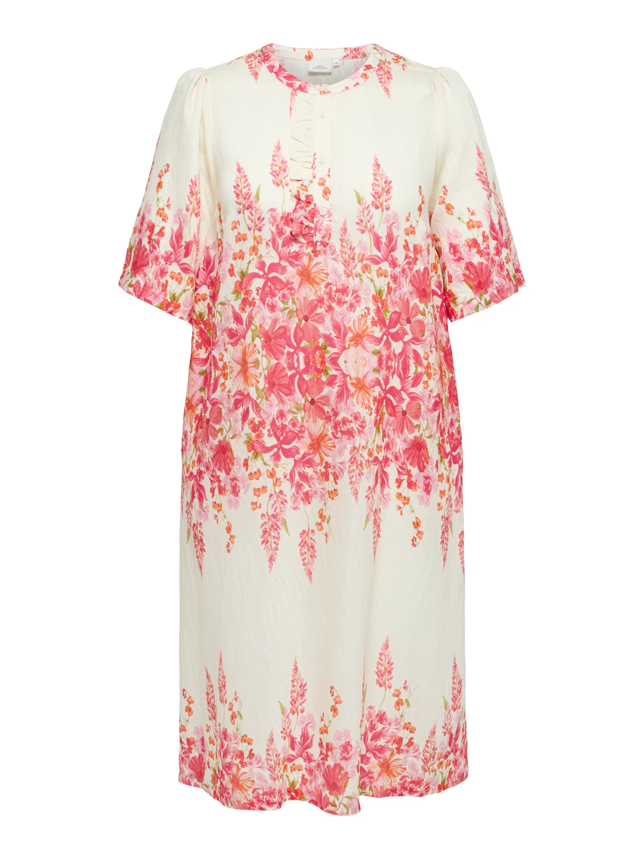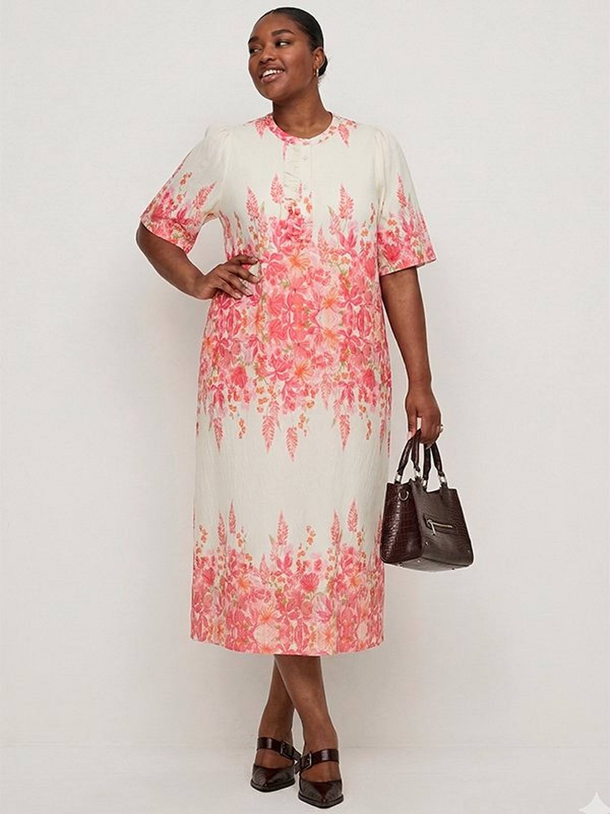 ONLY Pink Flower Midi Dress floral print midi dress with puff sleeves and half button detail