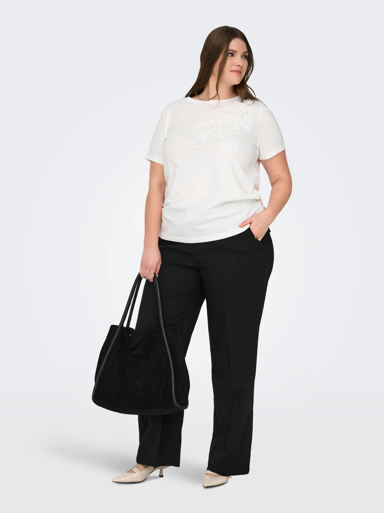 Styling the ONLY White Pearl TShirt is simple and versatile. You can pair it with jeans for a clean everyday look, or wear it with trousers or skirts when you want something a little more polished. Since the embroidery and pearl detail already add elegance, plain bottoms work beautifully alongside it. Additionally, it layers easily under cardigans or jackets without adding bulk.