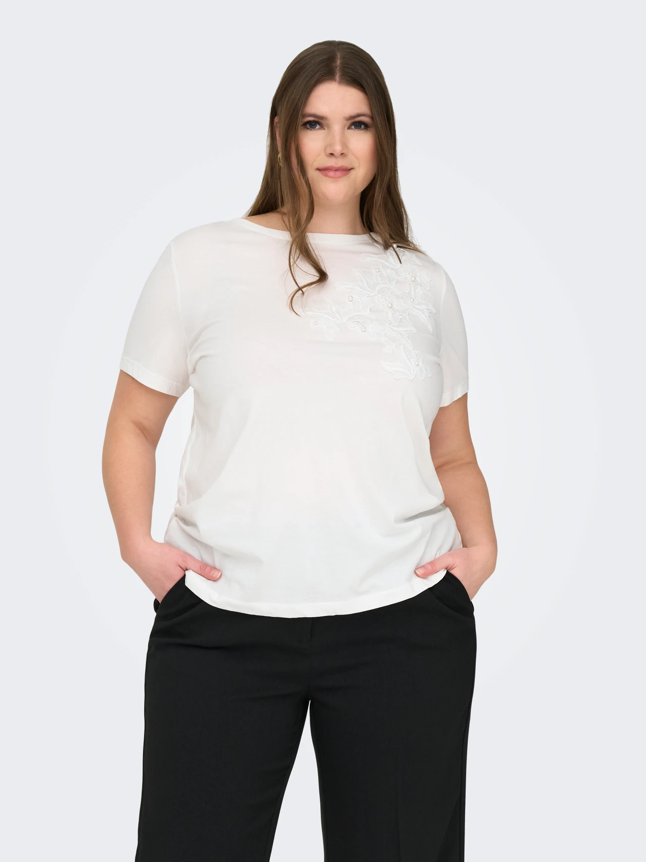 ONLY White Pearl TShirt adds soft elegance to an easy everyday shape with delicate embroidered detail.