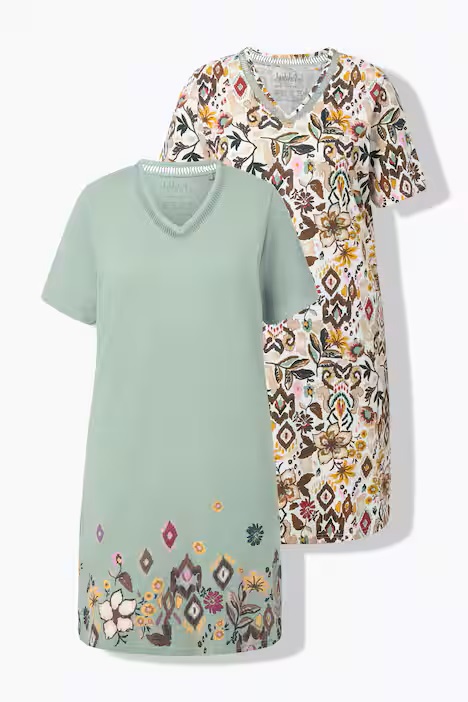 Ease into comfort with the UllaPopken Bloomscape Nightdresses — a beautiful pair of soft, breathable nightdresses designed for pure relaxation. The UllaPopken Bloomscape Nightdresses feature one all-over floral print and one border print design, both crafted from 100 % cotton for a naturally smooth, breathable feel. Because of their soft jersey texture and easy fit, they’re perfect for unwinding after a long day or lounging through lazy weekends. Moreover, the floral detailing adds a gentle, feminine touch that feels both fresh and timeless.