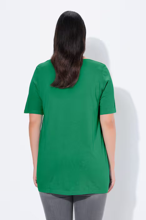 Styling feels wonderfully simple. You can tuck it into jeans for a casual everyday outfit, wear it loose with leggings for relaxed comfort, or dress it up with tailored trousers and accessories for a smarter finish. Since emerald green pairs easily with both neutrals and prints, it slips seamlessly into your wardrobe and works across seasons.