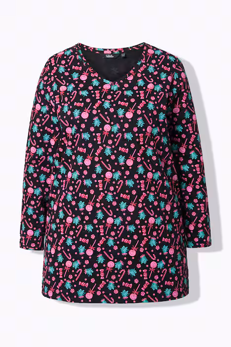 The UllaPopken Peppermint Tree Tunic brings an instant touch of Christmas charm with its sweet peppermint-inspired tree print. Because it’s made from soft 100% cotton, it feels breathable and gentle on the skin, making it a lovely choice for everyday winter wear. The V-neckline sits comfortably without dipping too low, and the long sleeves give that cosy, seasonal feel. Moreover, the A-line swing shape flows beautifully over the body, offering movement and comfort without clinging.