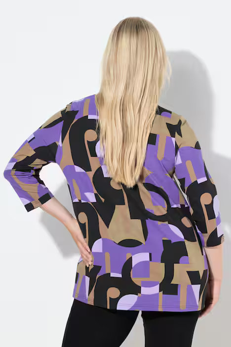 UllaPopken Purple Letter Top in a bold abstract print with comfy stretch fabric and flattering 3/4 sleeves.