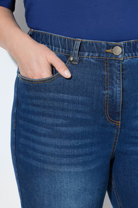 When jeans feel this good, they quickly become your go-to pair. The Ulla Popken Stretch Blue Jeans blend comfort and timeless style perfectly. Because they’re crafted from a soft cotton-rich denim with added stretch, they move easily and keep their shape all day long. The 28¼-inch inseam gives a flattering ankle length, ideal for trainers, boots, or flats. Moreover, the rich blue denim wash pairs beautifully with everything from bright tops to cosy knits.