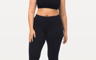 Black ankle length stretch cotton leggings by Ulla Popken with slim leg design and comfortable elastic waistband.