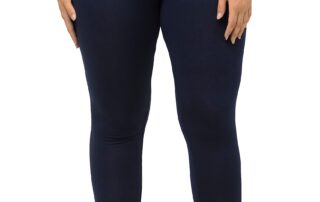 Navy ankle length stretch cotton leggings by Ulla Popken with slim leg design and comfortable elastic waistband.