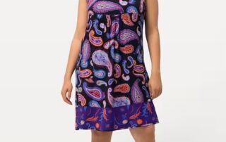 plus size dress Ulla Popken Short Paisley Sleeveless Dress scoop neck sleeveless design ruffled cross seam two patch pockets contrast
