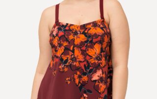 Stand out in this Ulla Popken tankini—bold print, pointed hem, and flattering fit made for plus size clothing lovers