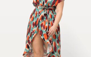 plus size clothing Ulla Popken Abstract Print Kaftan wrap look v-neck wide short sleeves drawstring tie at waist long side