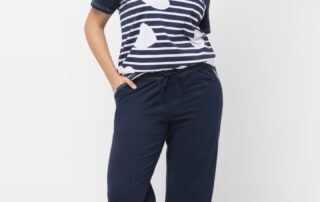Soft cotton, charming stripes, and a heart motif—this plus size pajama set from Ulla Popken offers the perfect cozy-chic loungewear.