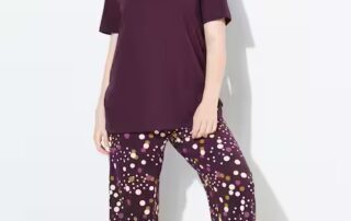 Playful comfort 💜 The UllaPopken Polka Dot Pyjama Set pairs a soft cotton V-neck tee with fun dotted trousers for