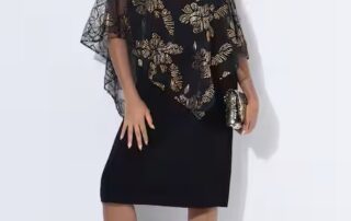 Elegant sparkle ✨ The UllaPopken Sequined Chiffon Dress shimmers with gold detail and soft jersey comfort — made to dazzle