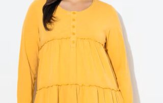 Sunshine softness ☀️ The Ulla Popken Ruffled Flounce Tee flows beautifully and feels as bright as it looks 💛