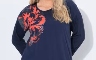 Soft navy comfort with a little shimmer 💫 The UllaPopken Sequined Flower Tee brightens every outfit — easy to wear,