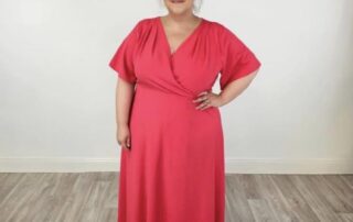 Details: plus size clothing SPG Coral Wrap Over Dress Long plain dress with crossover neckline cut below the bust and